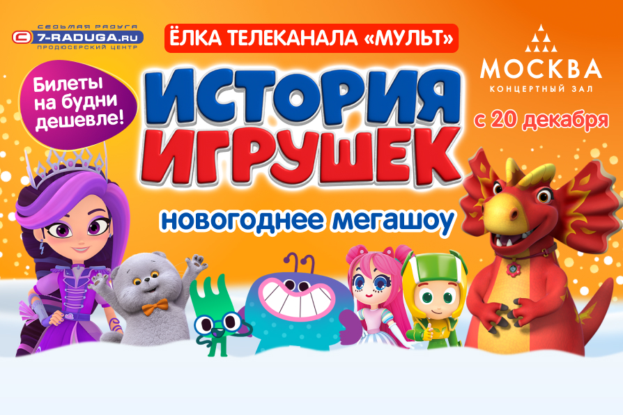 Ёлка телеканала "Мульт" "История игрушек" в концертном зале "Москва", "Остров Мечты"Продюсерский центр "Седьмая Радуга" — один из лидеров индустрии новогодних семейных шоу, создатель самых высокобюджетных и зрелищных ёлок в Крокусе, Кремле и Дворце Ирины Винер (2024/2025) — вместе с телеканалом "Мульт" приготовил для вас "Историю игрушек"! Это грандиозная новогодняя сказка, в которой мечты становятся реальностью!